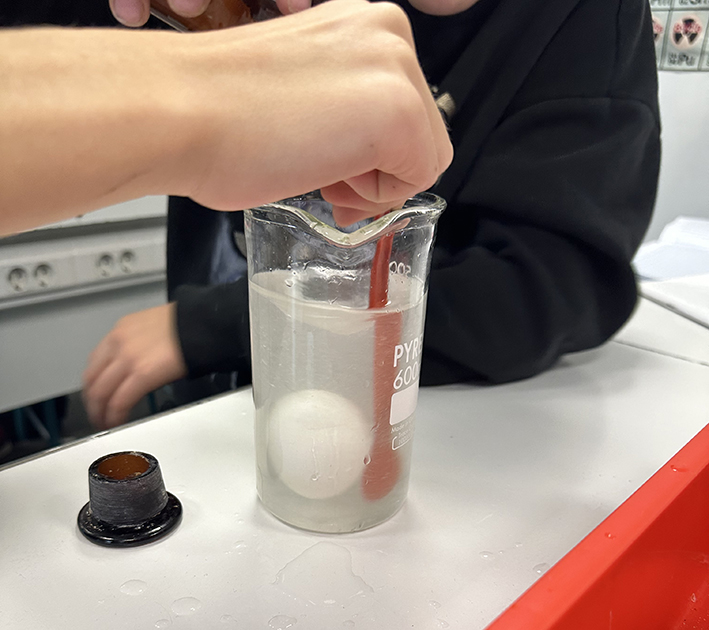 Qu’est-ce qui est le plus dense : l’œuf ou l'eau ? C’était le thème d’un travail pratique des 6èmes en cours de sciences physiques.
