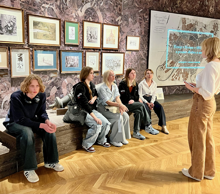 L’exposition multimédia au pavillon 61 du parc VDNKH est consacrée à l’œuvre de Léon TOLSTOÏ, son roman GUERRE ET PAIX. Les élèves de 1ère SIR se sont rendus à cette exposition interactive qui permet de visualiser les personnages du roman et leurs prototypes, les lieux où se sont déroulés les événements du sujet, de mieux comprendre les conflits qui avançaient la narration de cette épopée.