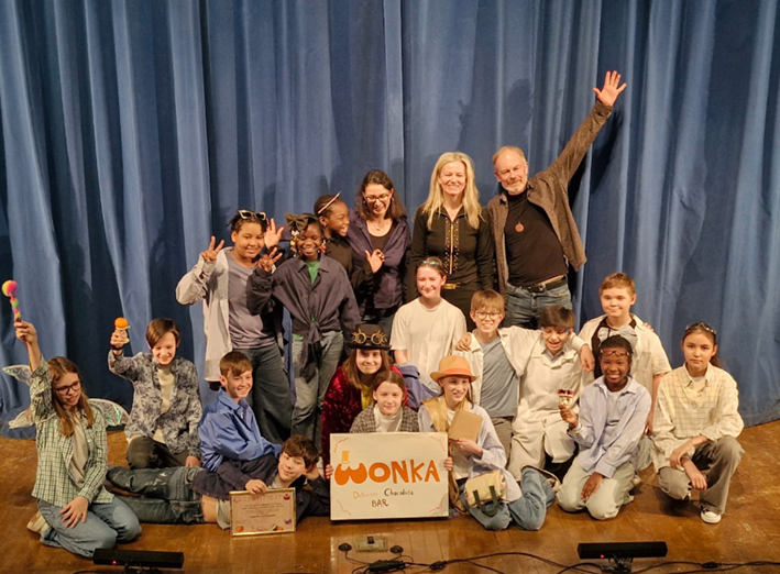 Notre lycée a été représenté par les élèves de 6A qui ont joué la pièce qu’ils ont écrite eux-mêmes, « Charlotte et la chocolaterie », sur la base du roman « Charlie and the Chocolate Factory » par Roald Dahl, étudié en cours d’anglais.