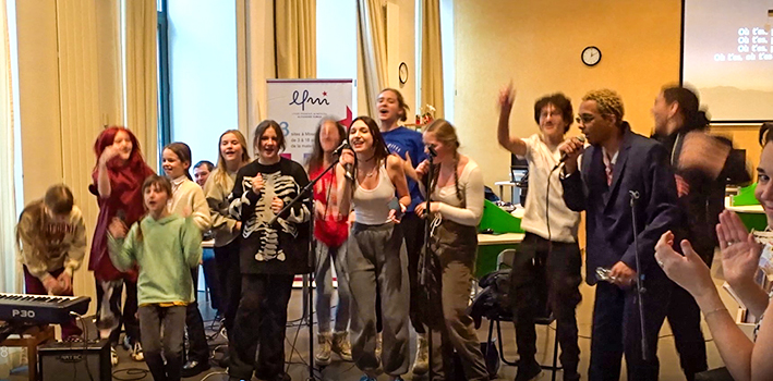 Traditionnellement la veille des vacances de Noël une Fête de la musique est organisée au lycée.