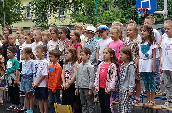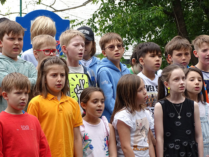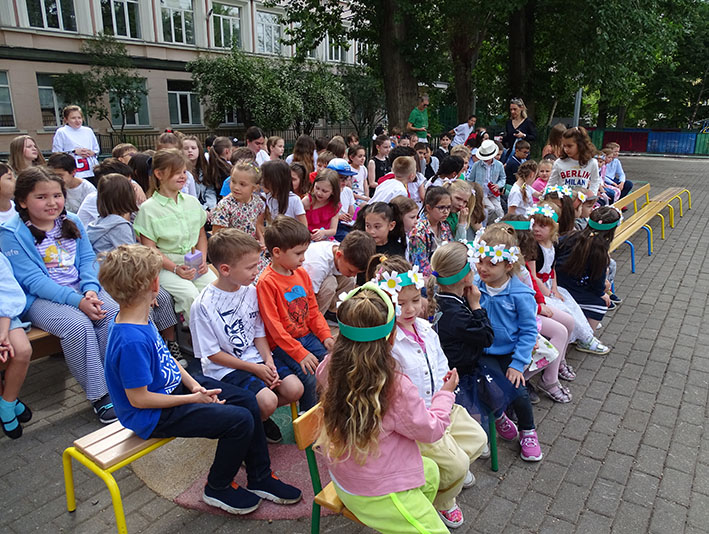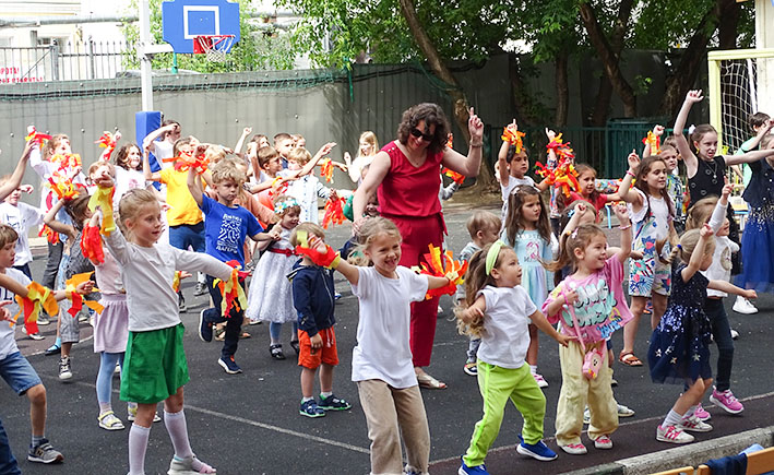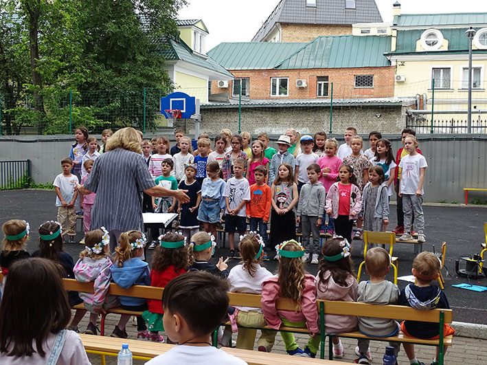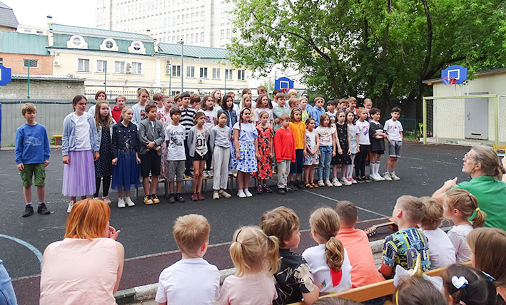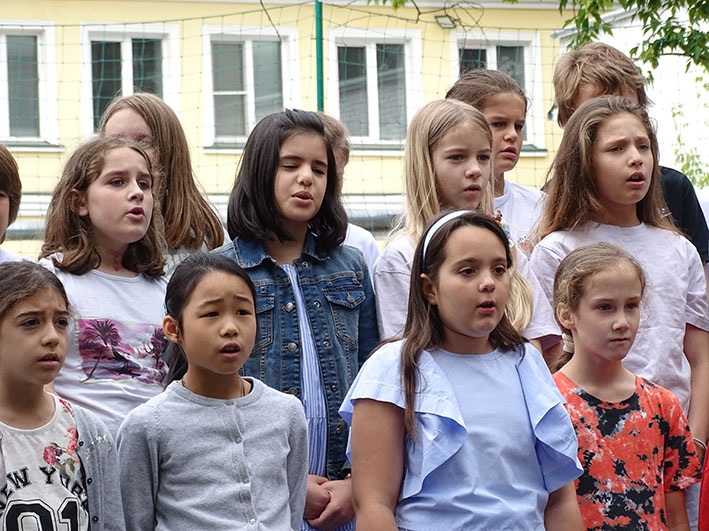 Toutes les classes ont participé à cette agréable manifestation en plein air dans la cour de l’école. Encadrés par leurs professeurs, les élèves ont chanté en français, en russe et en anglais. La fête a été clôturée par une danse collective.