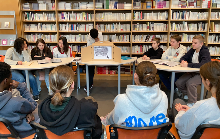 Le 7 avril les élèves du groupe ELCE 4e ont présenté leur projet C’est quoi GET LOST qui participe au concours des théâtres plurilingues kamishibaï de la ZECO AEFE, dont le thème est «Fiche-moi la paix !»