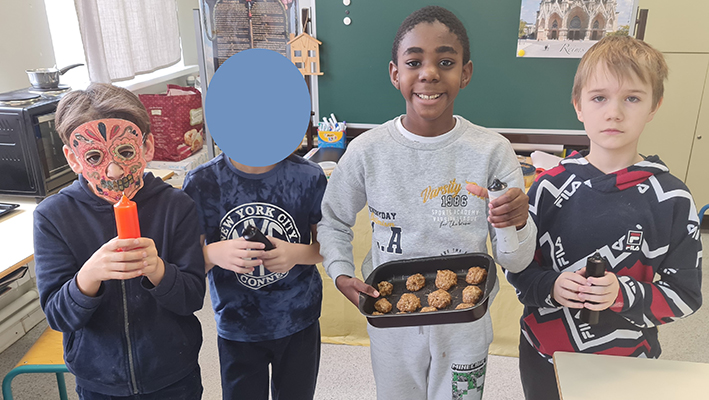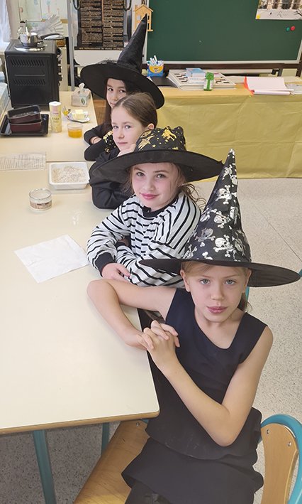 Lors de la dernière journée avant les vacances, pour fêter Halloween, dans le cadre du cours de culture anglaise, et afin de faire le lien entre l'étude de l'Australie, pays anglophone vu lors de la première période et celle de la Nouvelle-Zélande, autre pays anglophone qui sera découvert au cours de la deuxième période, « des sorcières », « des magiciennes », « des démons squelettiques » et des « sans-nom » ont confectionné, au CM1-CM2, leurs propres gâteaux ANZAC et les ont fait déguster aux adultes de l'IDF.