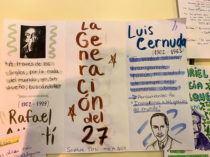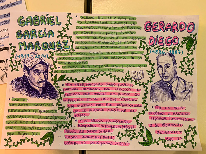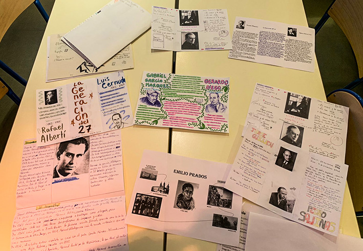 Les élèves ont étudié les liens qui les unissaient au poète Federico García Lorca et à Pablo Neruda, ils ont travaillé en classe inversée, en se renseignant chacun sur un ou deux poètes, puis ils ont préparé des présentations et des dépliants qu’ils ont échangés.