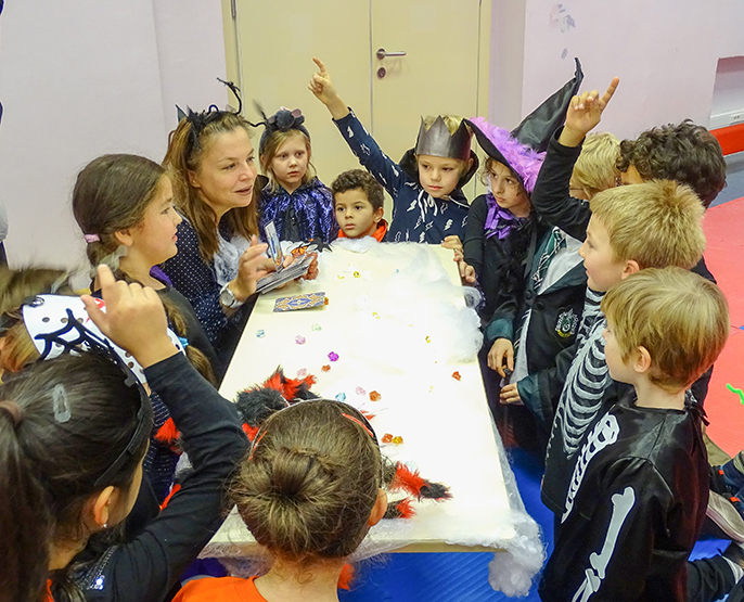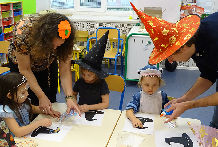 Cette année l’école Bounine a été transformée en école des magiciens : lors des ateliers les élèves ont appris à confectionner des baguettes magiques, décorer les chapeaux de sorcière, lire les cartes et faire des prédictions.