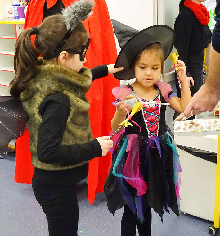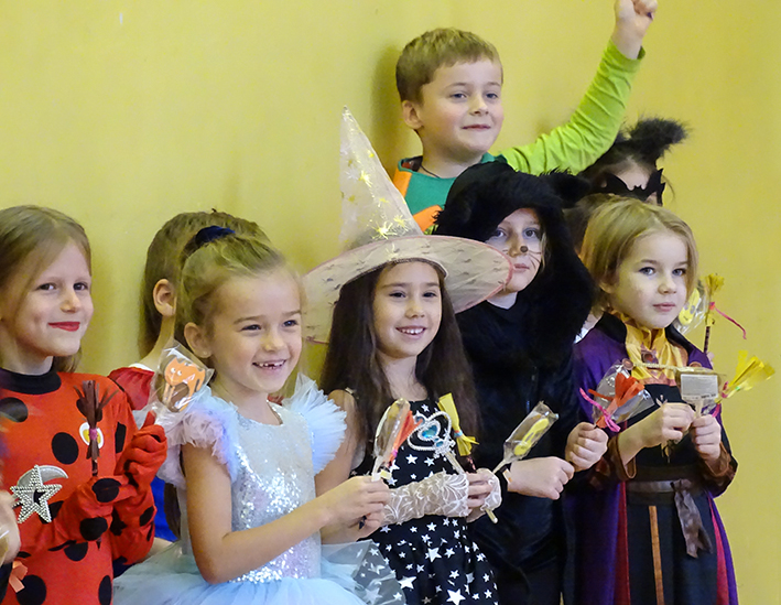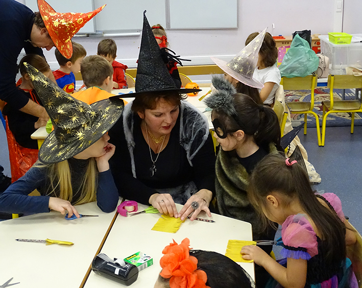 Les enfants aiment bien la fête d'Halloween avec tous ses déguisements, décors, histoires de sorcière, friandises… Traditionnellement cette fête arrive à l’école primaire la veille des vacances de la Toussaint et toute la journée on peut voir dans les classes et dans les couloirs des vampires et des squelettes, des sorcières et des fées !
