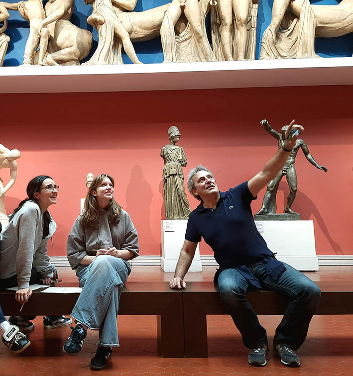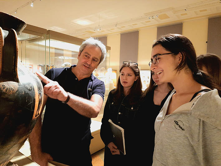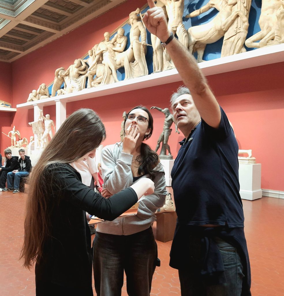 Cette visite avait un double objectif : une évaluation pratique sur place suivie d'une découverte des collections. Les élèves ont tout d'abord fait preuve de leurs compétences analytiques en décrivant des compositions sculpturales ainsi que le célèbre vase du Dipylon. À l'issue de cette évaluation, ils ont pu explorer le musée et y admirer les chefs-d'œuvre de l'art grec qui y sont exposés.
