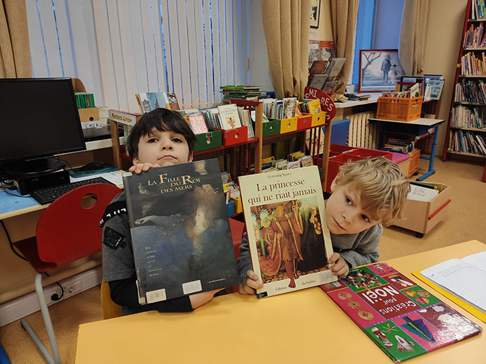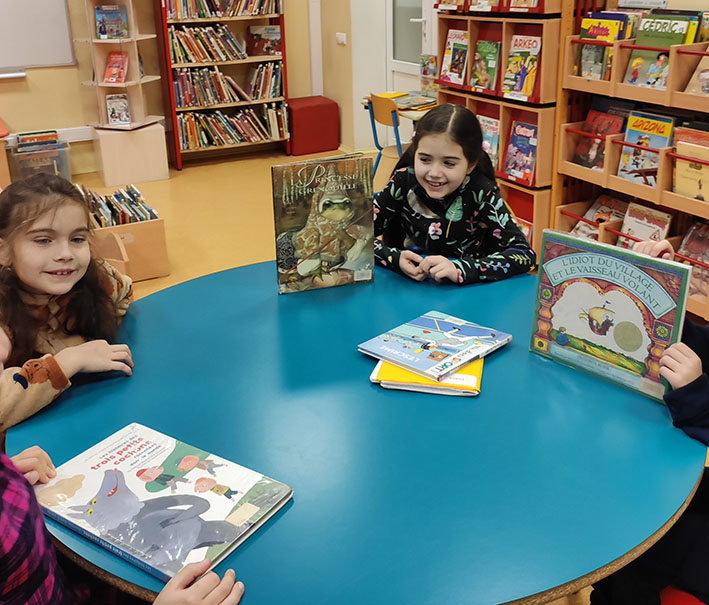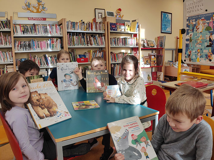 Les élèves découvrent ou redécouvrent avec curiosité le rayon CONTES  de la bibliothèque. Le monde magique des contes variés  s’ouvre à nos petits lecteurs : contes populaires de  différents pays, contes merveilleux ou contes de fées  sans oublier les contes d’auteur et toute une ribambelle de contes détournés.