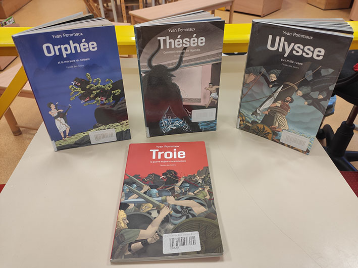 Enfin les CM2 vont bientôt étudier ce genre plus en profondeur en comparant le texte littéraire d’un conte et la BD, une fois le travail sur la collection la Mythologie grecque de Yvan Pommaux terminé.