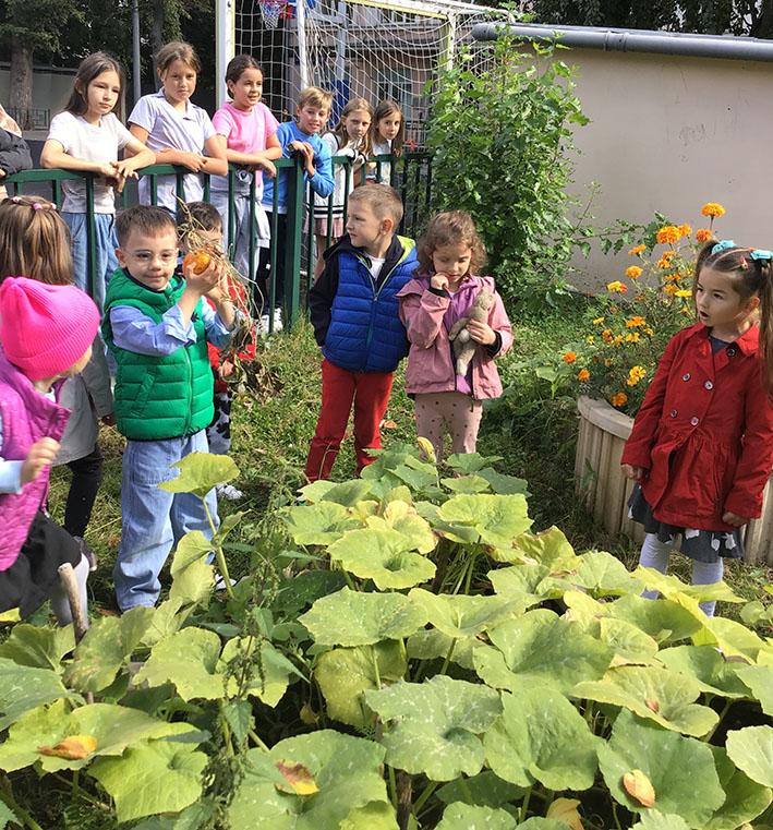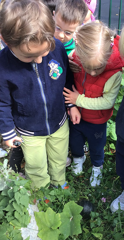 Puis sont venues les grandes vacances d’été. Et quand nous sommes revenus à l’école, quelle surprise ! Dans les massifs s’étaient ouverts de magnifiques fleurs jaunes, des œillets d’Inde, et dans un autre parterre, de jolies citrouilles avaient commencé à apparaître.