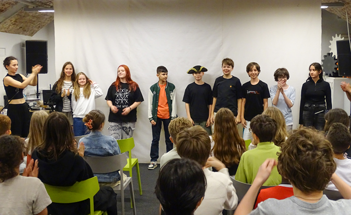 Chaque artiste a écrit sa propre nouvelle en russe et en français, puis l’a enregistrée avant de travailler sur la mise en scène et de présenter son récit poétique, encadré par deux étudiantes de l’Ecole supérieure des Arts de la scène Konstantin Raïkin et Mme TLEMSANI, professeure de français.