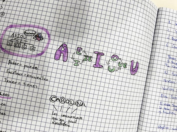 Les élèves de 5e, quant à eux, sont déjà prêts pour une année riche en découvertes ! Ils ont travaillé sur l’emblème de leur classe et ont exploré diverses stratégies pour apprendre une langue de manière efficace. N'hésitez pas à jeter un œil à leurs jolis cahiers ci-dessous !