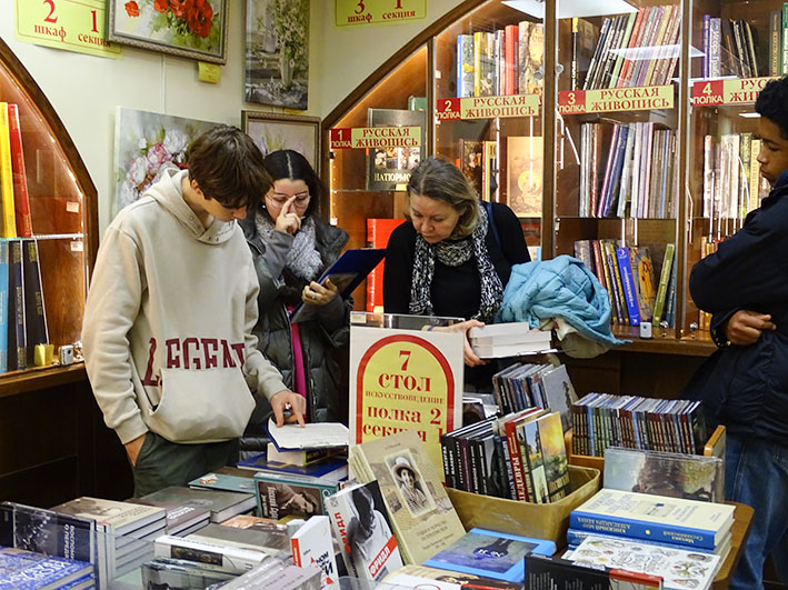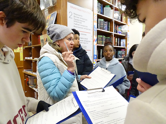 Cette année scolaire les élèves de 3ème groupe francophone apprennent le russe dans le cadre du projet « L’alphabet de Moscou ». La lettre «Б» est représentée dans notre projet par la librairie « Biblio Globus ».