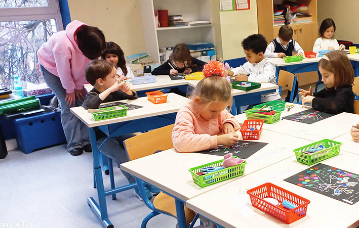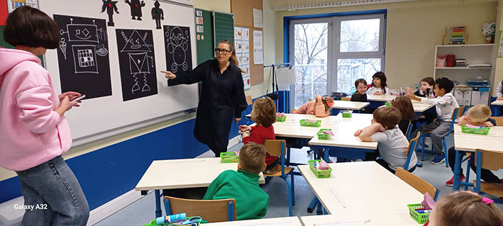 Pour la semaine des Lycées Français du Monde, les CP B de l'IDF ont accueilli en classe Mme Arkind, artiste, et maman de Meri, lundi 1er décembre.