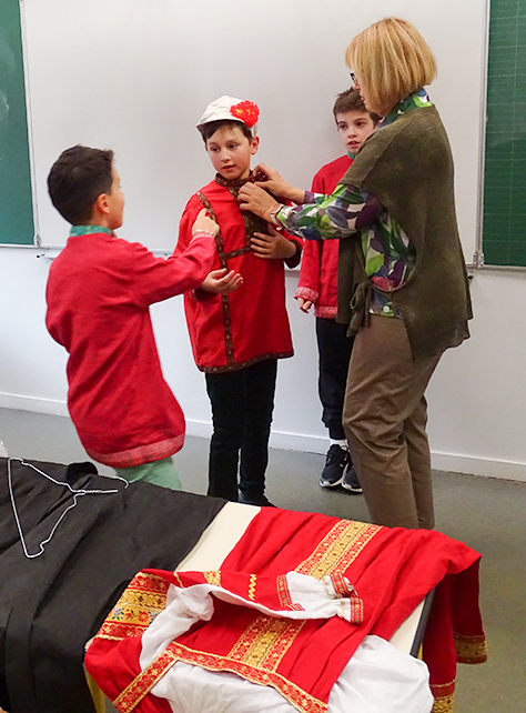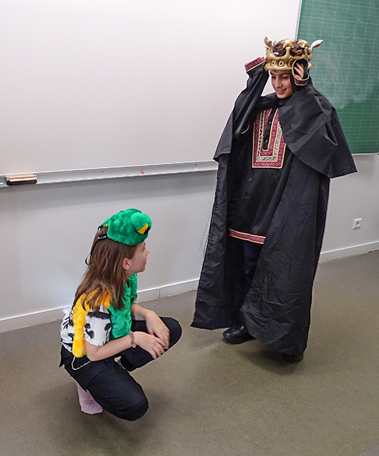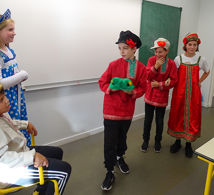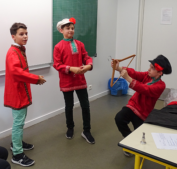 Les élèves du groupe SIR de la classe de 6ème travaillent sur la mise en scène du conte russe « La Princesse grenouille ». Guidés par leur professeur de russe Mme Zlata Zaiountchkovskaia, les élèves montent un spectacle qu’ils vont présenter aux autres classes.