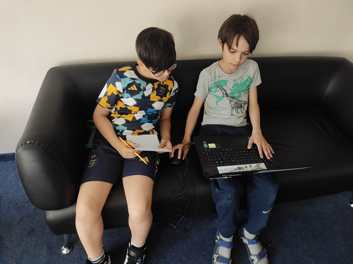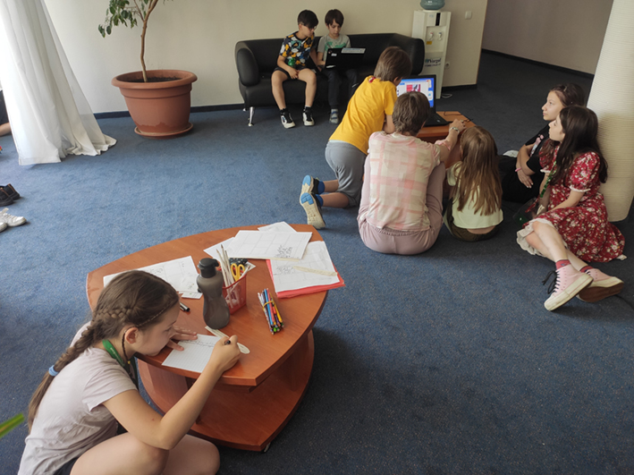 En effet, cette fois, guidés par leur professeure documentaliste Lara Ovsyannikova, les élèves se sont initiés à l'art des reportages et à la rédaction des articles (CM2), à la prise de photos (CM1) et à la création d'une planche de BD d'actualité (CE2). Le travail étant organisé au préalable lors des séances de BCD, chaque élève a pu travailler pour sa rubrique choisie. L'objectif de ce projet est de relater le déroulement du séjour en faisant part de tous les évènements passés.