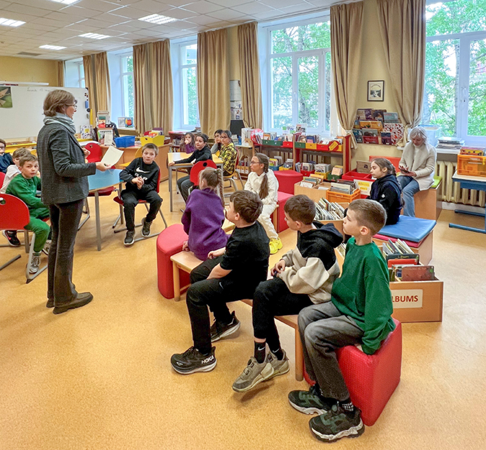 Le premier jour de la visite s’est passé à l’école BOUNINE où Mmes Annabelle PERE et Lara OVSIANNIKOVA ont proposé à nos visiteurs de travailler avec les élèves au BCDI et en cours de mathématiques. Les jeux dans la cour de récréation ont rapidement fait naitre l’amitié entre les élèves de deux établissements.