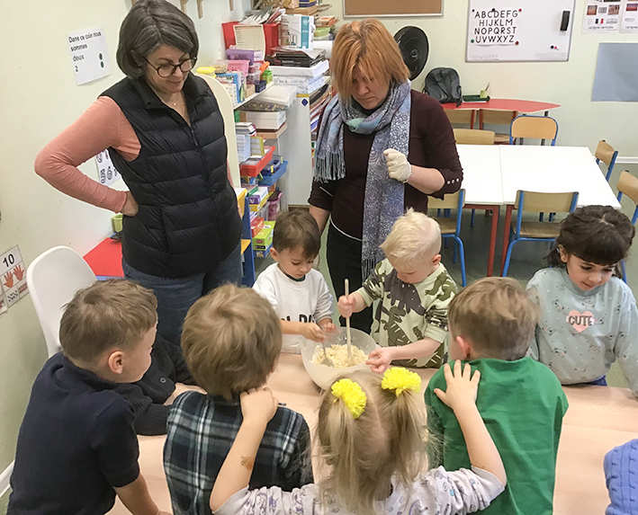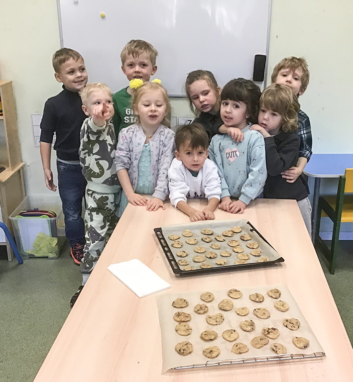Ensuite, c'était l'heure de cuisiner des cookies : nous avons lu la recette, expliqué, et montré chaque ingrédient.