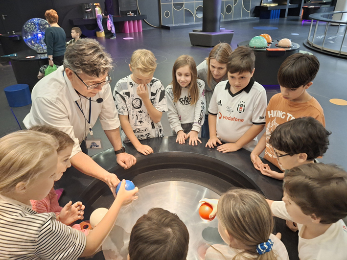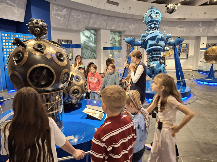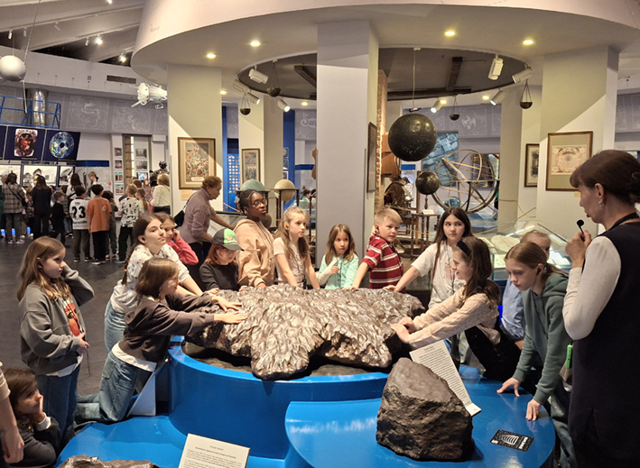 Le 21 mai, la visite du planétarium nous a transportés dans le passé avec les grands astrophysiciens comme Galilée, de son vrai nom Galileo Galilei, leurs instruments de recherche, leurs découvertes…Les élèves ont aussi touché des météorites dont une de 1500KG qui… exaucerait les vœux !