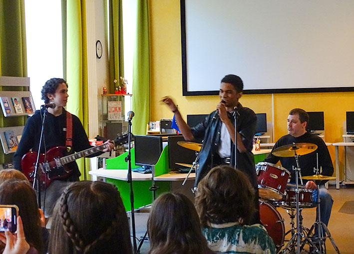 Comme chaque année le LFM célèbre l’arrivée de l’été en musique. La météo instable a renvoyé les élèves au CDI pour une matinée de folie le lundi 5 juin au cours de laquelle les classes se sont succédé pour assister au spectacle.