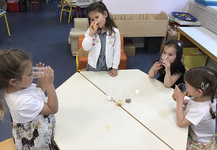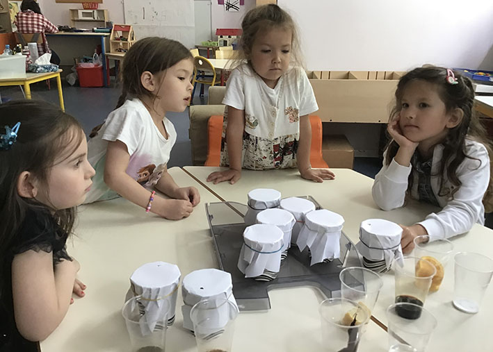 Les élèves de Petite Section ont fait travailler leur nez pour définir si l’odeur leur plaisait ou non, tandis que les élèves de Moyenne Section ont comparé les différentes odeurs lors du Jeu des odeurs pour retrouver ce qu’ils sentaient.