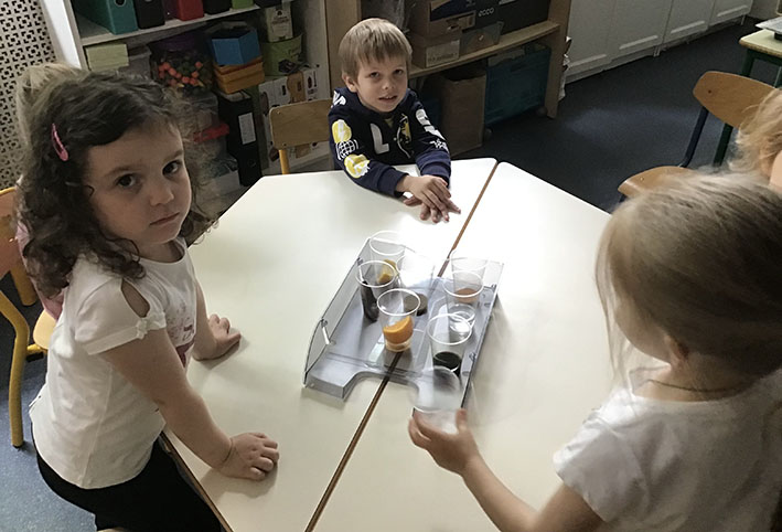 Les enfants de la classe finissent d’exercer leur sens avec le 5ème sens de l’odorat.