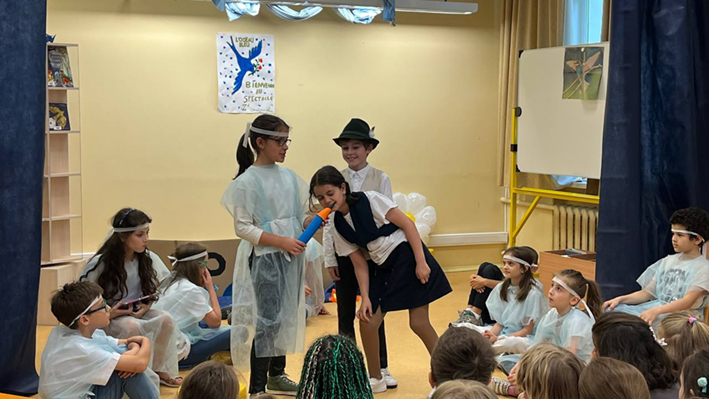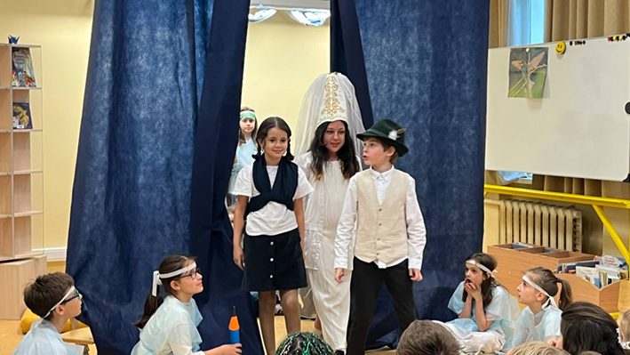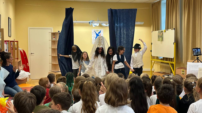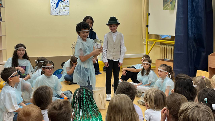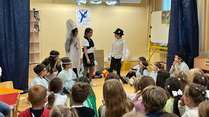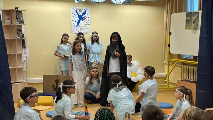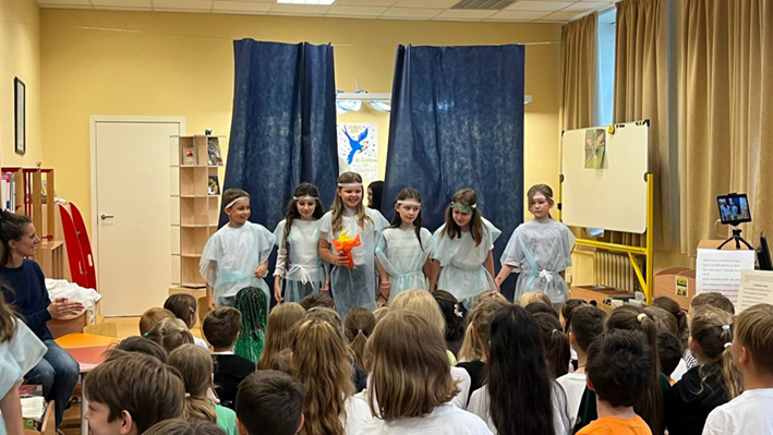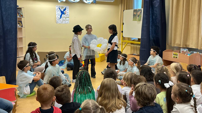 Lundi 23 juin, les élèves des CM1 CM1A et CM1/CM2 de l'école Ivan Bounine ont été heureux de présenter à leurs camarades du CP aux CM2 ainsi qu’aux enseignants le spectacle « L'Oiseau bleu » d'après la pièce de Maurice Maeterlinck. Cette production s’est réalisée dans le cadre d'un projet littéraire sur le conte et a été préparée en classe et en BCD lors des séances pédagogiques encadrées par Lara OVSYANNIKOVA, professeure-documentaliste.