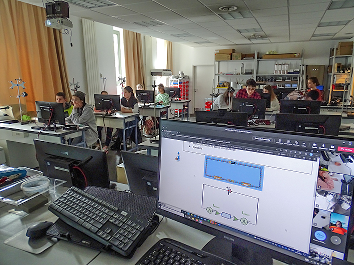 Après les vacances de printemps les élèves de la 6ème à la 2nde sont accueillis deux demi-journées par semaine à Milioutinski. Sous la surveillance d’un assistant d’éducation, la classe suit l’enseignement à distance depuis une salle du lycée.
