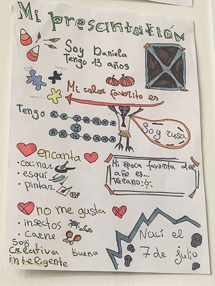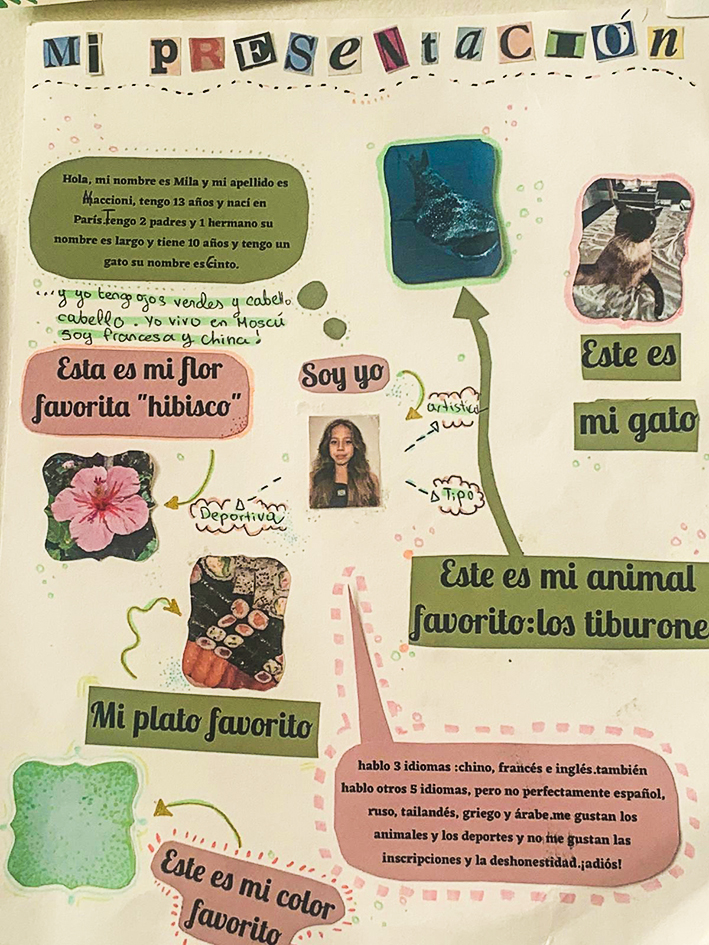 Les élèves de 4e ont présenté leur premier projet de l’année en espagnol et c’était très réussi ! Ils ont trouvé des adjectifs pour décrire leur personnalité. Ils sont parlés de leurs passions et ils ont essayé expliquer pourquoi ils n’aiment pas certaines choses. Leurs camarades pouvaient les questionner utilisant les formules de communication apprisses pendant le cours. Ce projet qui fait partie de l’Axe 1 a également comme objectif d’aider les élèves à apprendre à se connaître.