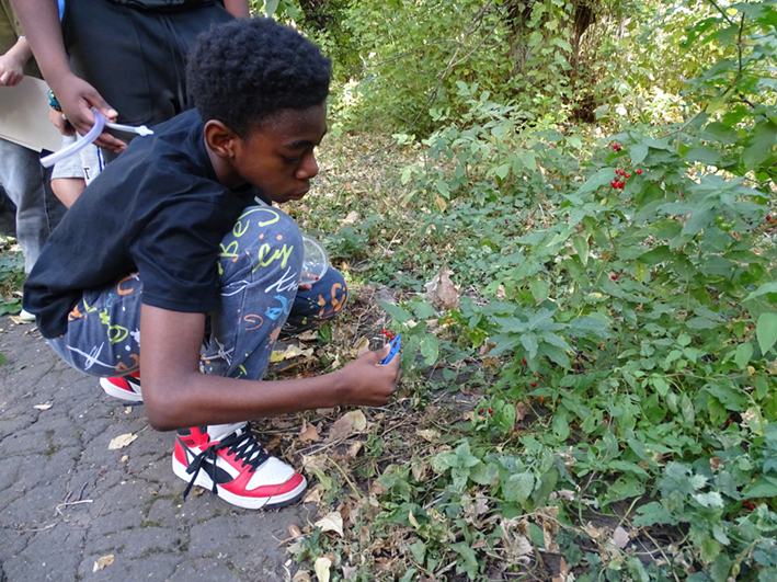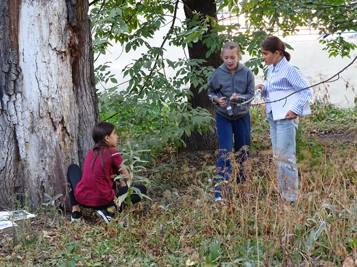 Munis de pelles, d’aspirateurs à insectes et d’autres instruments, les élèves se sont rendus dans un petit parc en face du lycée, encadrés par leur professeure de SVT Mme GUYOT.