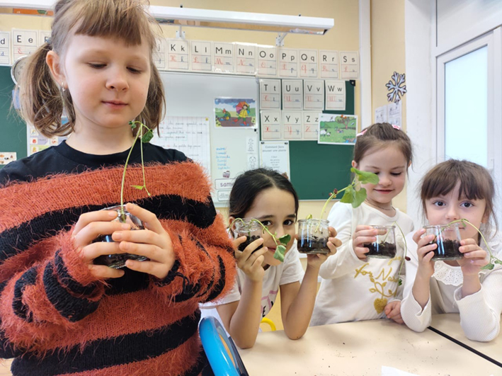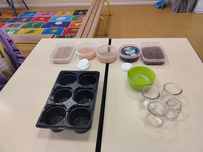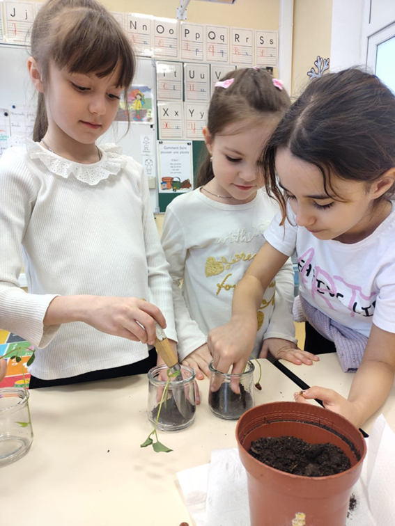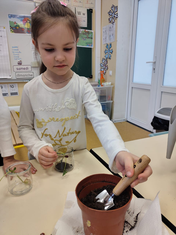 Tout au long de la croissance des plantes, les enfants observaient attentivement les changements. Des questions étaient posées régulièrement en français : « Qu'est-ce qu'on voit ? », « Comment cela grandit ? ». Cela renforçait leur vocabulaire et leur capacité à observer.