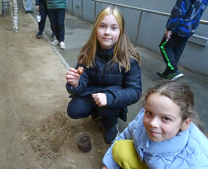 Bien impliqués dans le processus de plantation, les collégiens ont été très attentifs à la profondeur du trou : il faut qu’elle soit égale 3 fois à la hauteur d’un bulbe.