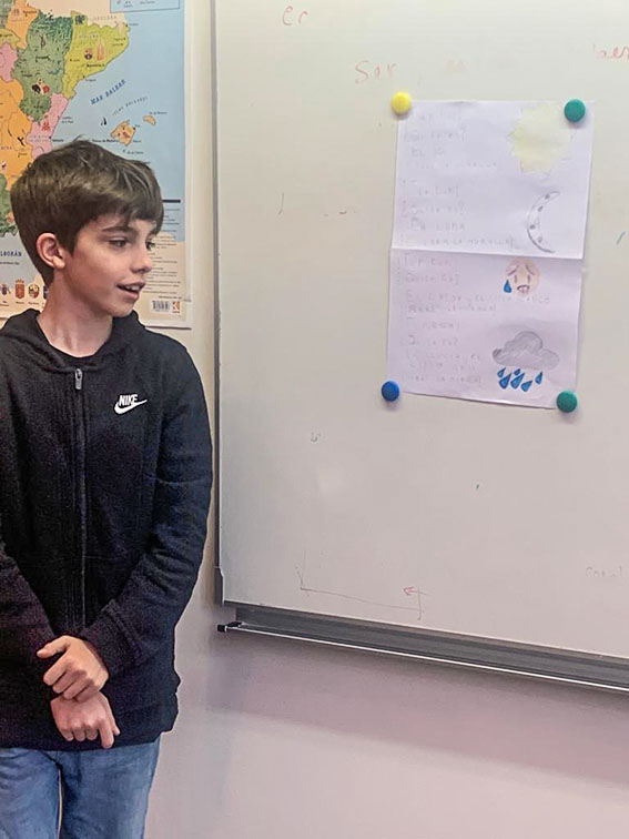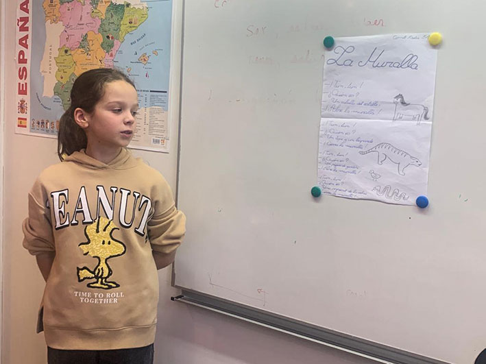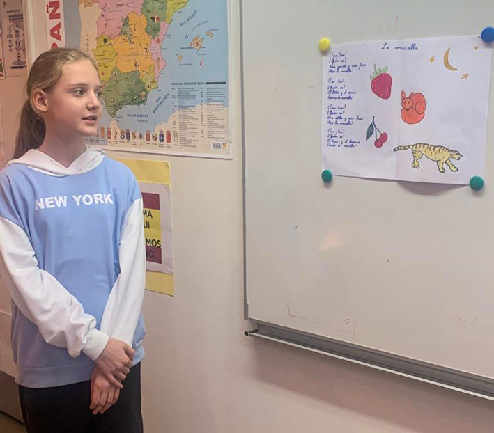 L’apprentissage de la langue se fait à travers de la musique, des images, des histoires mais aussi par le corps et la voix. Cette fois-ci, les élèves de 5e ont travaillé sur le poème «La muralla» du poète afro-cubain Nicolas GUILLEN qui a révolutionné la poésie en langue espagnole.