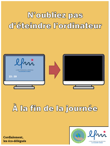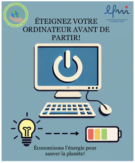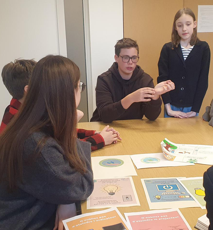 Un groupe d'élèves éco-délégués de la 6ème et de la 2nde ont rencontré M. Le Proviseur et Mme La CPE sur le thème de sensibilisation à l'écologie à la conservation de l'écosystème. Les élèves ont présenté plusieurs posters, afin de sensibiliser la communauté éducative à économiser l'énergie en éteignant les ordinateurs et la lumière dans les classes à la fin de la journée. Un logotype d'éco-délégués a également été proposé et validé.