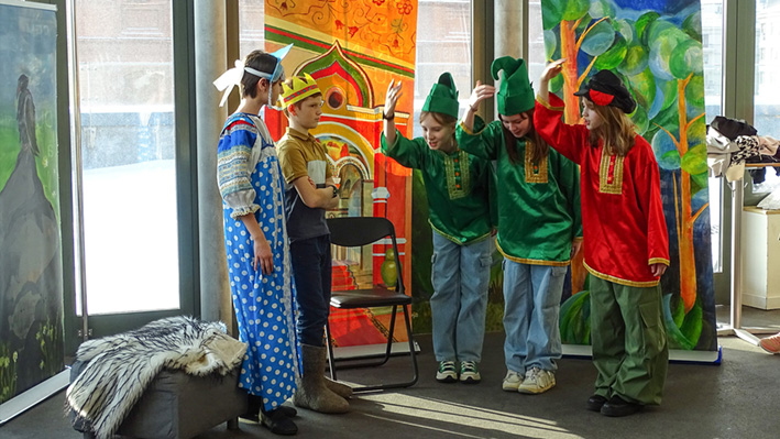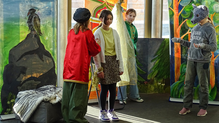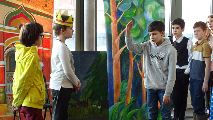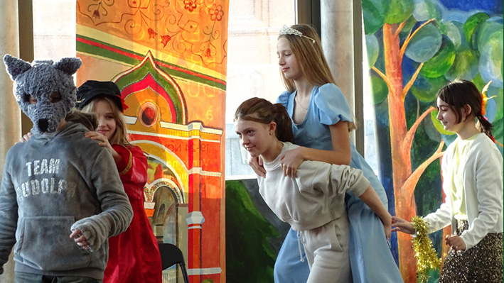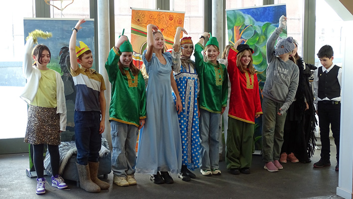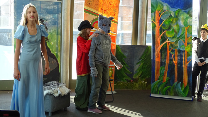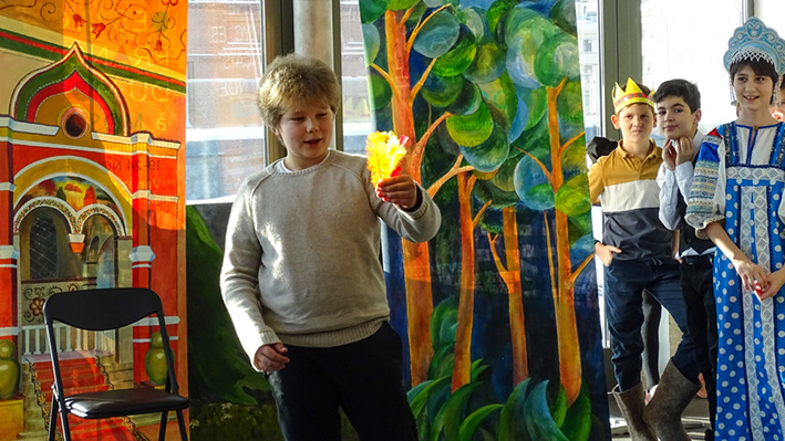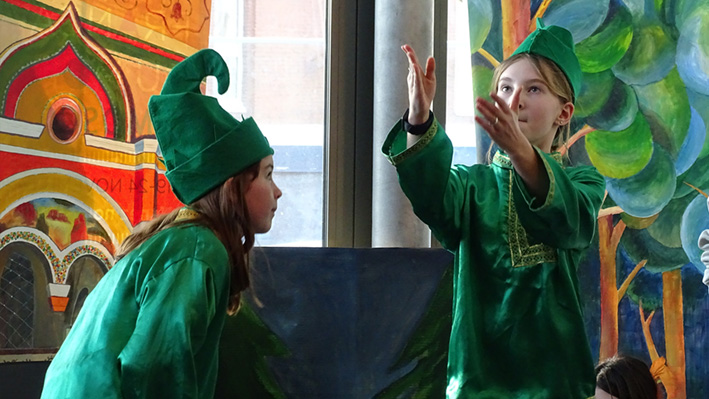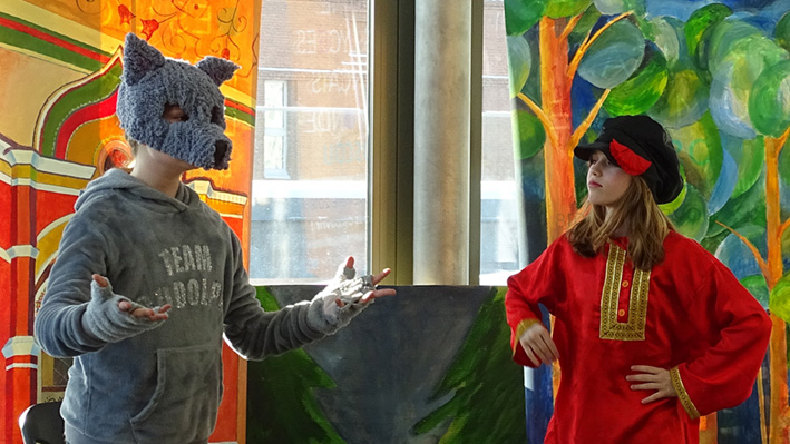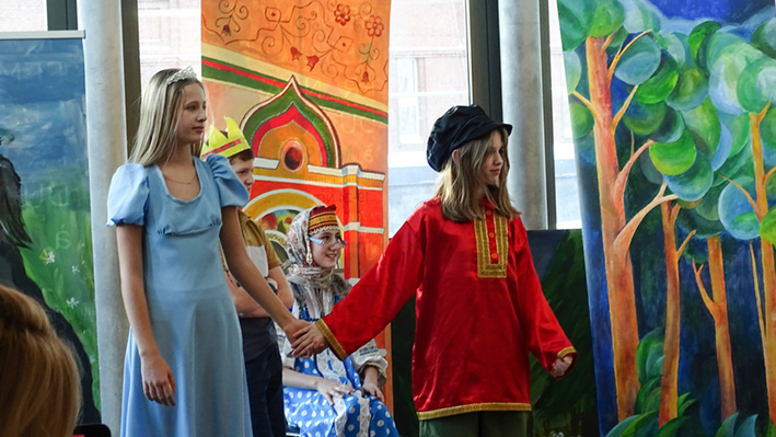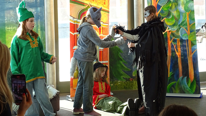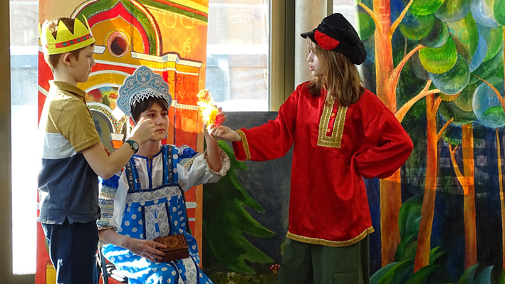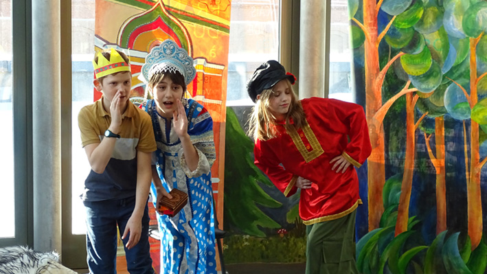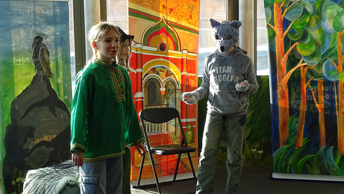 Les 6e ont présenté leur spectacle « Prince Ivan et le Loup » d’après le conte traditionnel en langue russe et française aux élèves du collège et de la classe CM1 A. La mise en scène a été travaillée lors des cours de russe avec Mme Zlata Zaiountchkovskaia et des cours de français avec Mme Sophie Bertrand. Le spectacle a eu beaucoup de succès !