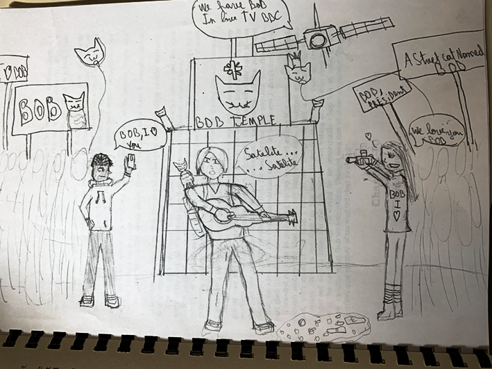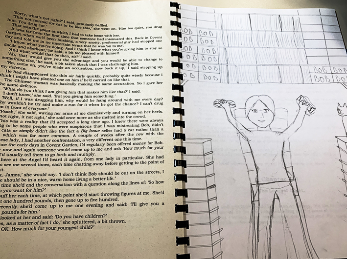 Les élèves de la section ELCE 4ème ont offert un livre illustré par eux-mêmes au CDI du lycée. Après avoir vu le film « A Street Cat Named Bob » et lu le livre, les élèves ont montré leur compréhension en l'illustrant chapitre par chapitre. Maintenant tout le monde est bienvenu à l’emprunter au CDI.