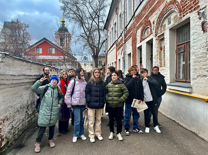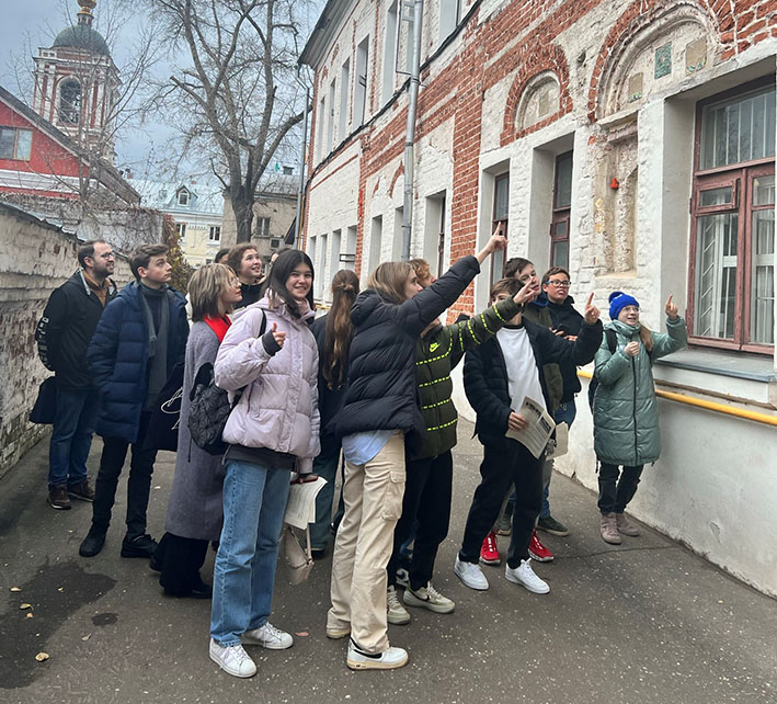 Dans le cadre du projet interdisciplinaire Histoire dans la Littérature (M. ROMANOV et Mme BELIAEVA), les élèves de 3ème SIR sont allés visiter le quartier Hitrovka. La visite de la place centrale et des cours intérieurs a permis aux élèves de découvrir l’architecture urbaine, de mieux comprendre le développement du quartier et de visualiser des passages lus lors du travail sur le projet. Les cours intérieurs situés derrière des façades dégradées cachaient des éléments architecturaux datés du XVII siècle bien conservés et restaurés, ouvraient le paysage urbain de l’époque soviétique gardant le charme de son intimité. La vue du plus ancien graffiti trouvé sur une des façades est ce qui a suscité le plus d’enthousiasme chez les élèves.