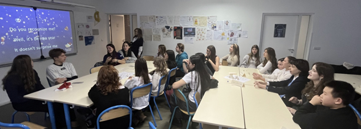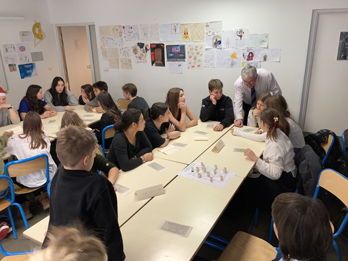 Le mercredi 18 décembre, les élèves de l’école britannique, accompagnés du Proviseur Mr English et des professeurs Mark et Liza, ont été chaleureusement accueillis au Lycée Français par les élèves des parcours PARLE et SELO. Ils ont eu l’occasion de découvrir les “Amazing Labyrinths” conçus par les élèves de Mme Antonova et de participer à la Fête de la Musique organisée par M. Valtchenko. Ce fut un immense plaisir d’accueillir nos partenaires anglo-saxons dans notre établissement. Nous sommes impatients de partager d’autres moments enrichissants ensemble très bientôt !