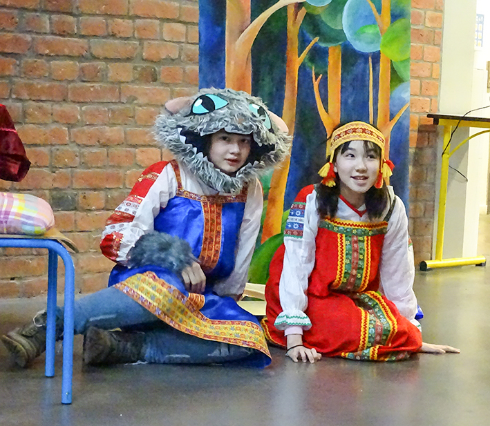 Les élèves de 6ème groupe Russe débutant, encadrés par Mme OLIVIER, ont présenté à leurs camarades le conte russe « Repka » (Un petit navet) et la chanson traditionnelle « Deux oies ».