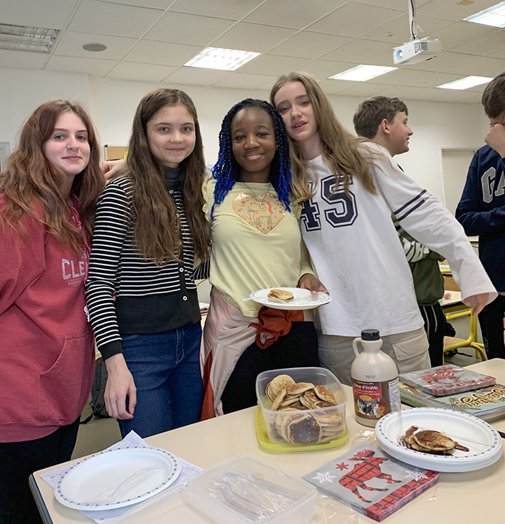 На уроке английского языка с госпожой Щербаковой ученица 4А класса Ханна-Роуз, вернувшаяся из Канады, сделала презентацию о своей стране: она рассказала об интересных фактах и кулинарных особенностях. Чтобы её одноклассники могли почувствовать настоящий вкус традиции, Ханна-Роуз угостила их блинами и кленовым сиропом, привезёнными из Канады.