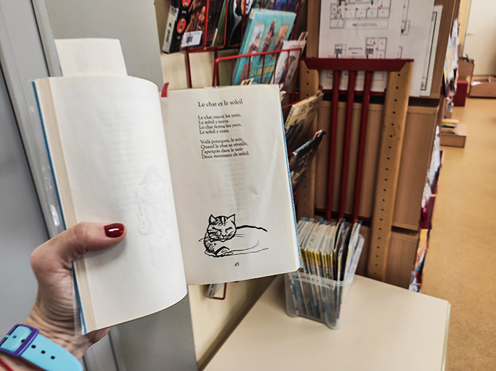 В конечном итоге, даже ученики СР полистали книжки с выстаки и смогли прочитать имена замечательных поэтов, таких как Пьер Коран, Карл Норак и Анн-Мариэль Вильверт (опять же бельгийцы!), а Лара читала всем вслух.