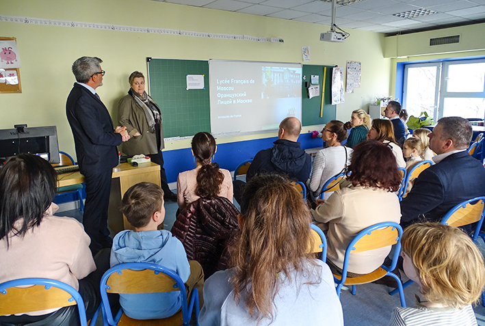 Г-н Госселин, директор начальной школы, представил французскую систему образования, AEFE, функционирование лицея и ответил на многочисленные вопросы родителей.