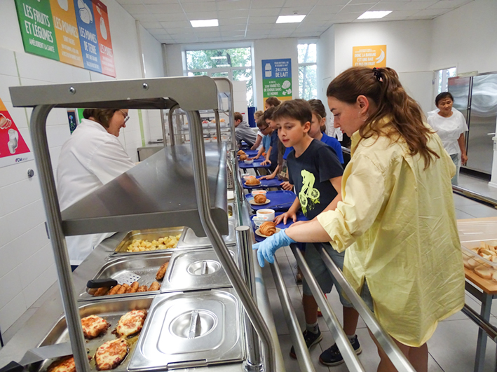 Ирина, воспитатель, и шеф-повар столовой помогают выбрать горячее и гарнир.