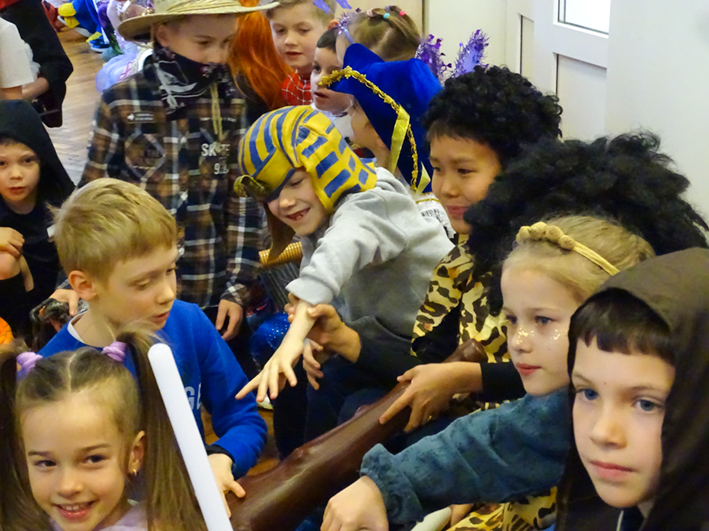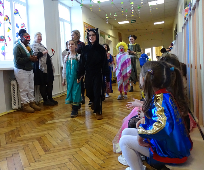 Праздничное шествие классов перетекало с этажа на этаж: кого здесь только нет! Принцессы и сказочные персонажи, волшебники и герои мультфильмов, мифические существа и гостьи из далеких стран… Какая красота!