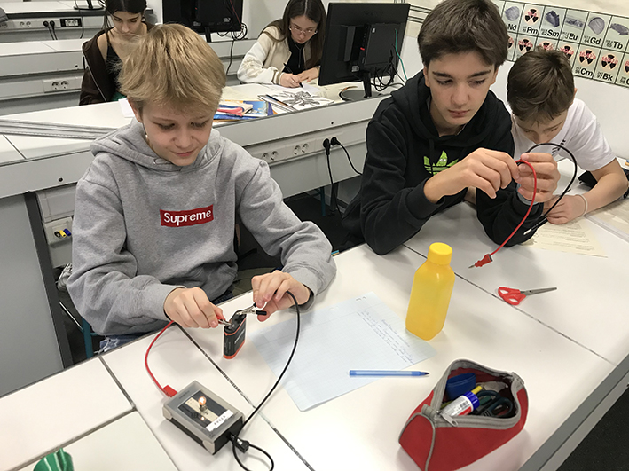 Ученики также работали над некоторыми темами, касающимися электрического напряжения, тока и скорости.