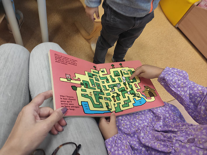Что касается наших самых маленьких учеников, то они с любопытством открыли для себя пространство BCD, активно участвовали в обмене мнениями во время чтения, проведенного педагогом-документалистом, и бросились к книгам, чтобы посмотреть много красивых картинок.