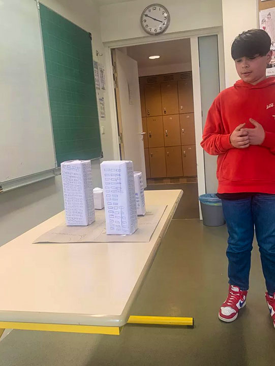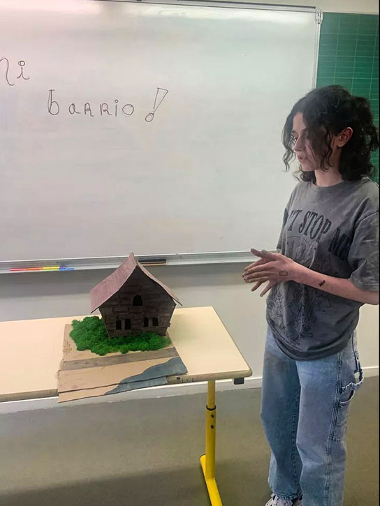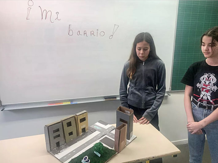Обзор проекта «mi barrio» на уроках испанского языка. Дома ученики 5-х классов создали макеты своего города или района, чтобы переосмыслить пространство и переосмыслить взаимодействие в форме конкурса, который позволит представить различные проекты. Ученики предложили комментарии к своей работе, используя соответствующую лексику.
