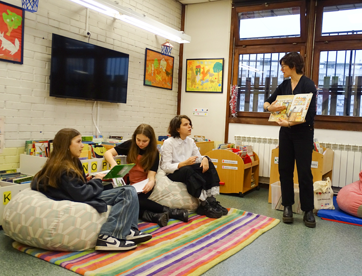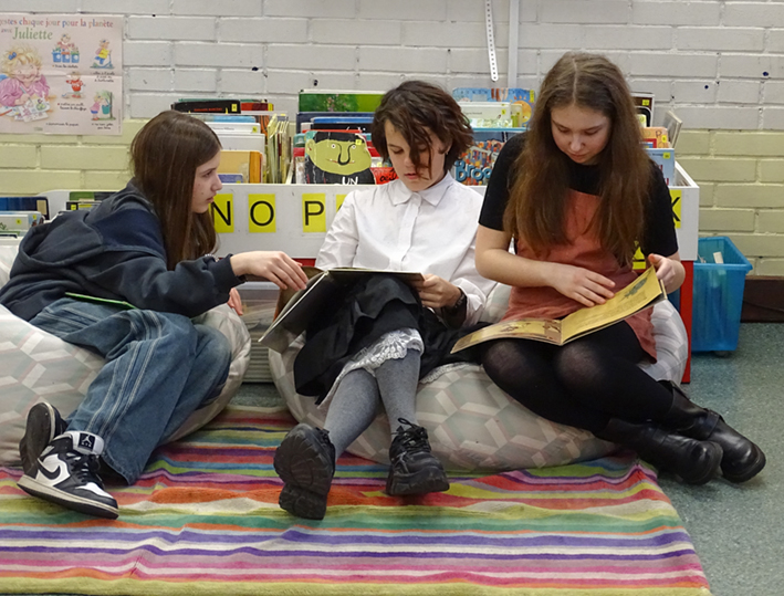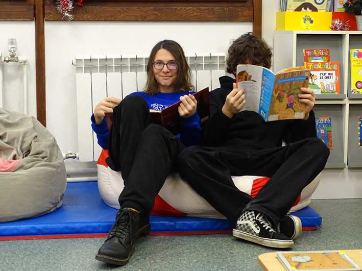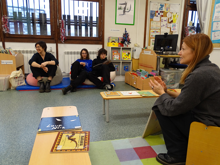 Пятеро новых учащихся 4-5-х классов отправились 28 января в школу IDF, чтобы познакомиться со своими будущими… маленькими слушателями, ведь через две недели они будут им читать сказки на французском языке. Ребята из классов CP и CE1 взирали с некоторым страхом и большим интересом на «взрослых» учащихся, да и «взрослые» тоже поначалу побаивались малышей.