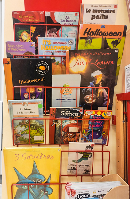 Старшие ученики познакомились с выставкой книг различных жанров на тему этого дня на французском и английском языках, а младшие от души посмеялись, слушая историю о Корнебидуй!
