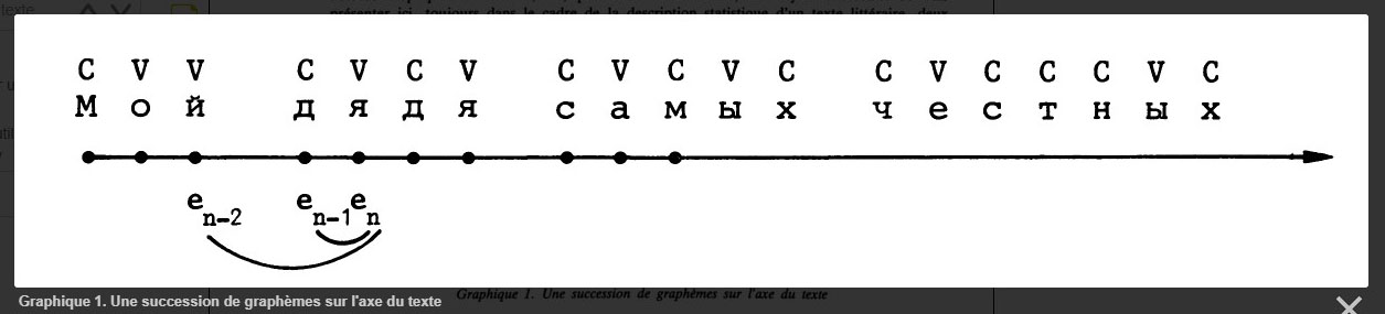 Затем они открыли для себя конкретные исторические или современные применения: самое известное — в области лингвистики с математическим изучением последовательности 20000 согласных и гласных в стихотворном романе «Евгений Онегин» Пушкина: Марков замечает, что каждая буква тесно зависит от предыдущей.